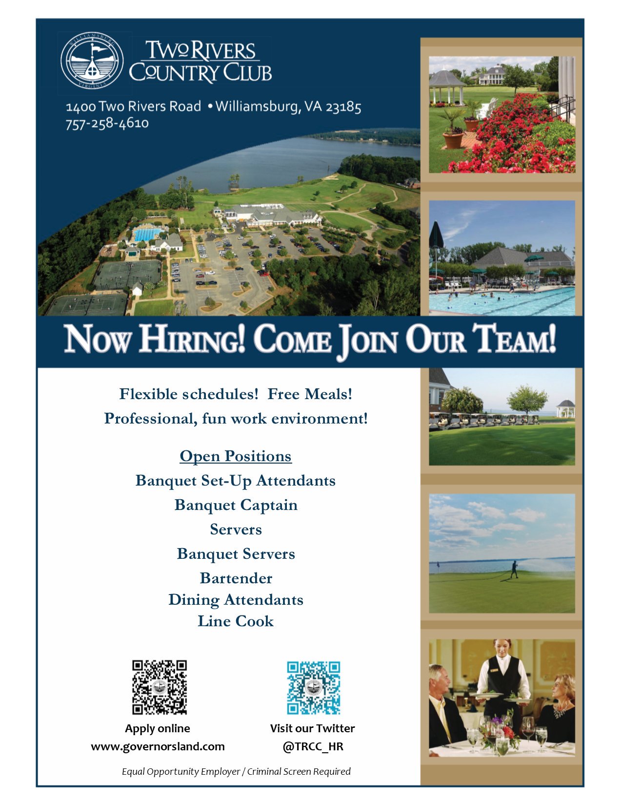 Multiple New Job Opportunities. Congressional Country Club 40. We accept applications throughout the year for employment.